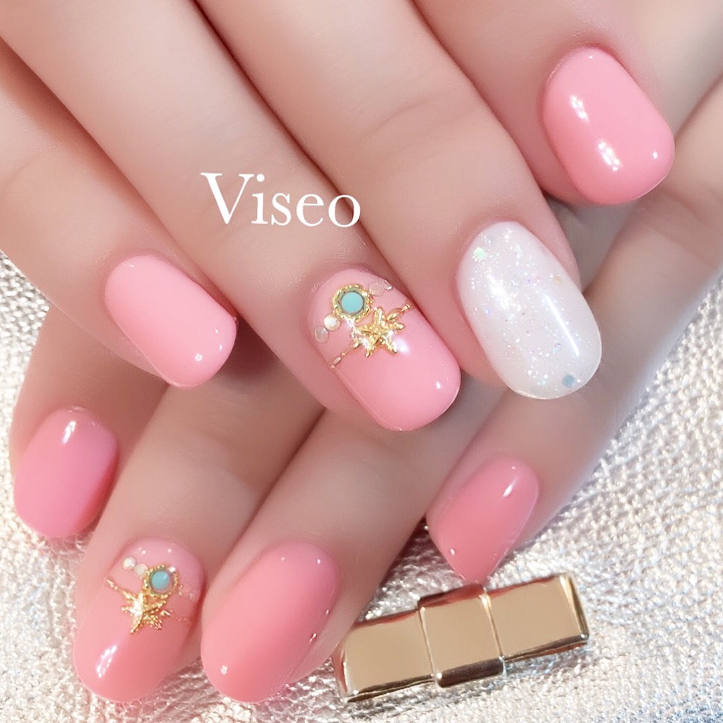 さりげなくシェルパーツをポイントに最後の夏ネイルを満喫です♪